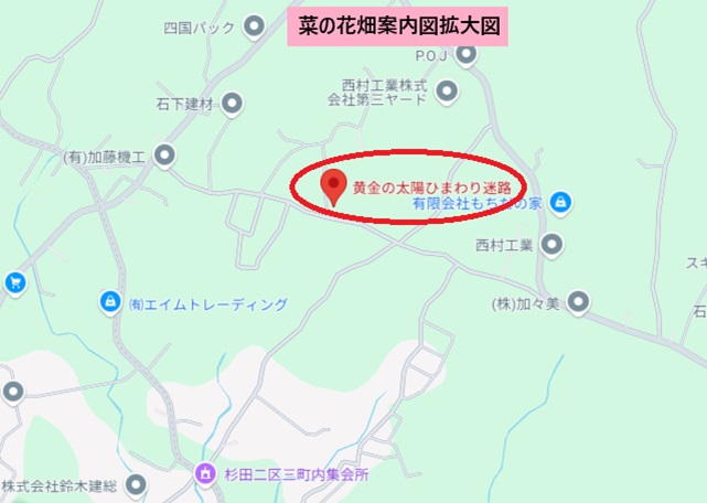 毎年、美しい景色を守る活動として「ひまわり迷路」がつくられています。こども達が元気に迷路を探検していたり、展望台の上から眺めたり楽しめる菜の花畑です。。