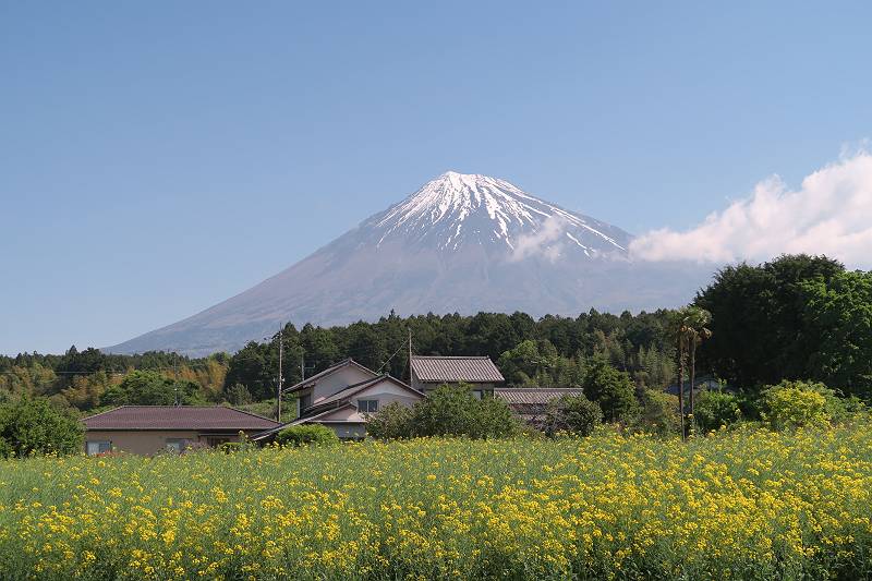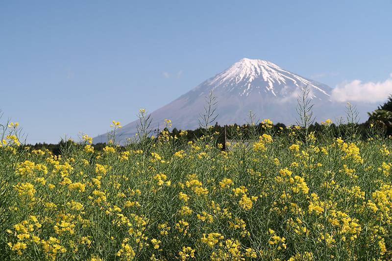 静岡県富士市大淵にある菜の花畑。富士山をバックに黄色い菜の花が一面に咲きほこっております。